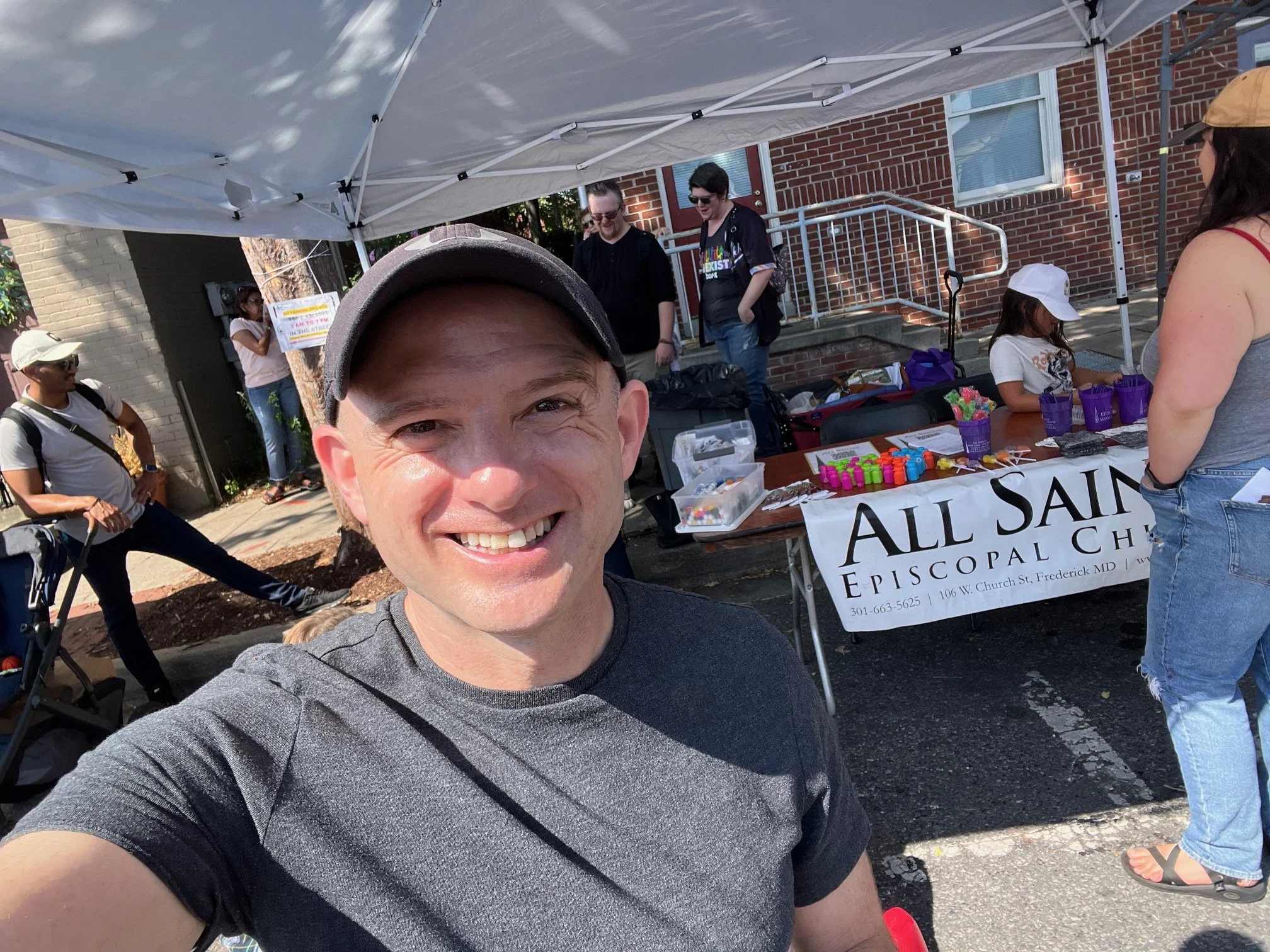 Josh helping out during Frederick’s In the Streets at the All Saints Episcopal Church table (where Josh & Katie attend church).